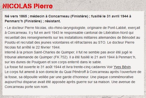 Textes commémoratifs sur les fusillés et résistants du Pays Bigouden (incluant des informations sur Pierre Nicolas). le-chiffon-rouge-morlaix.fr